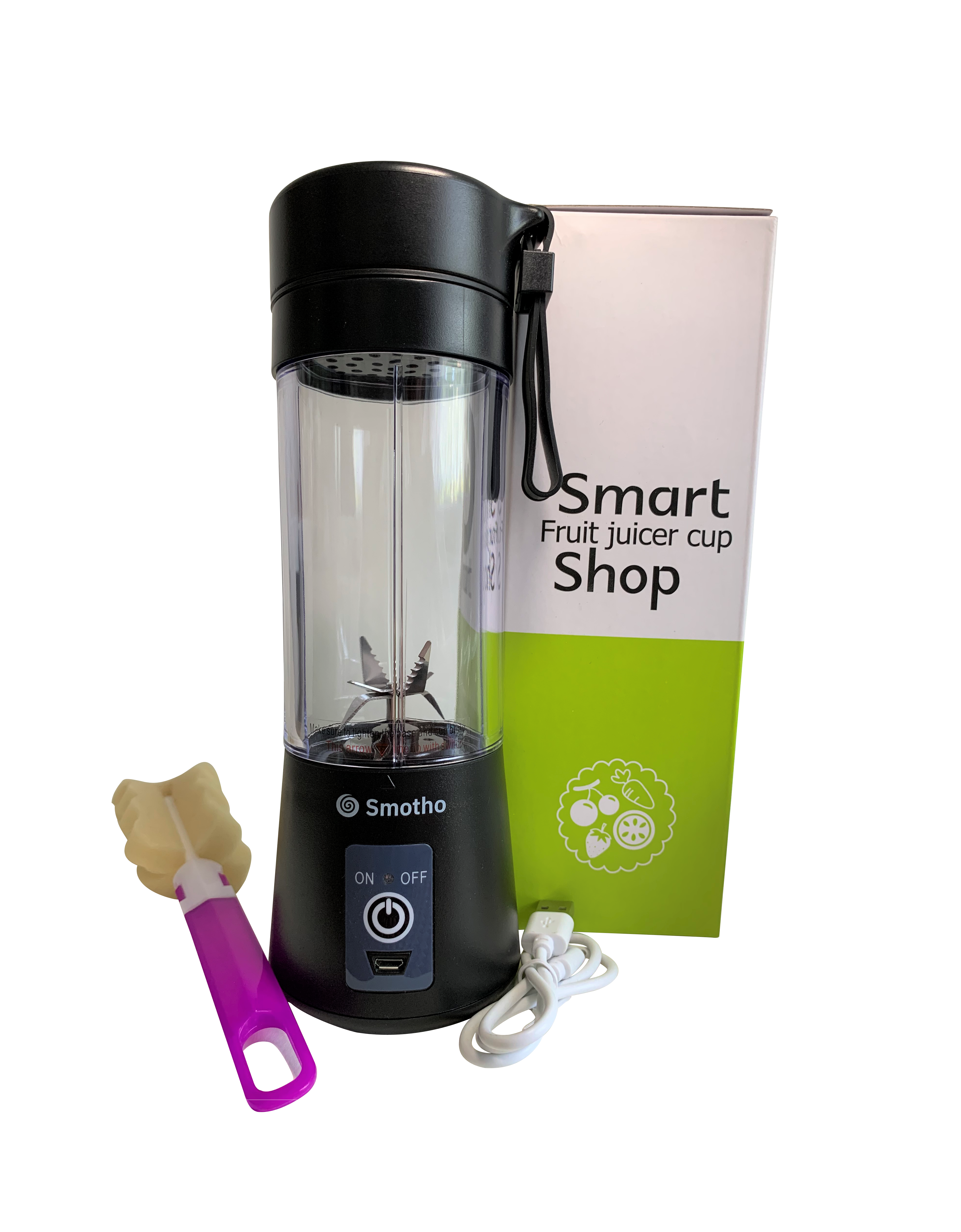 Der Smotho Fruitjuicer verfügt über 300 Watt und kann überall per USB-Kabel aufgeladen werden; im Auto, mit der Powerbank, dem Handykabel oder am PC. Mit 380ml Inhalt passt da eine Menge rein und mixt mit ultraschnellen 22000 Umdrehungen pro Minute fix innerhalb von 30 Sekunden. Der integrierte Filter verhindert, dass größere Fruchtstückchen beim Einschütten durchfließen.